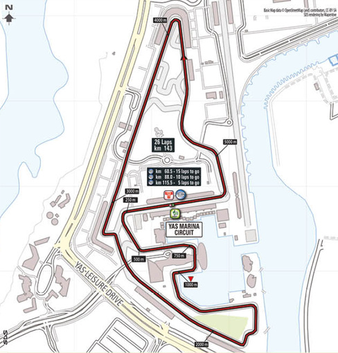 4ª Etapa (Domingo 26 febrero): YAS MARINA – YAS MARINA, «YAS ISLAND STAGE» (143 km). Rutómetro (Zip)