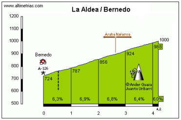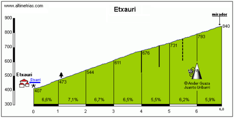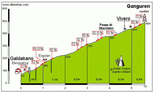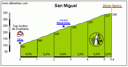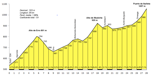 La vertiente clásica de Ixua se subirá 2 veces. Perfil APM, click para descripción (incluye tramo hasta Arrate)