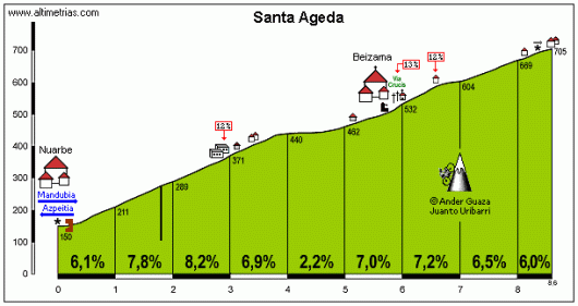 Sobre la etapa de Arrate, efectivamente tiene cierto parecido a la de Neila, si bien en la etapa burgalesa siempre suben por la misma vertiente (aunque con el último ascenso más duro, al llegar hasta la cima), y sin embargo en la de País Vasco las primeras subidas son por la vertiente clásica y la última por Matsaria, estrenada el año pasado.