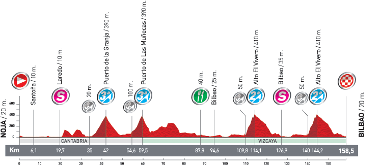 Al día siguiente, continúa la media montaña, en este caso con una etapa de 174 km entre San Sebastián y Bilbao, la capital de Vizkaya, teniendo que superar en los últimos 70 km los puertos de Sollube, con 3,5 km finales a casi el 9%; Santo Domingo, no puntuado pese a contar con 2,8 km al 8%; y el Vivero (hasta km 4,7), irregular pero con tramos duros, para un total de 4,7 km al 7,6% de media, coronándose a 14 km de meta, la mayor parte de suave descenso pero con los últimos 3 km ya básicamente llanos, siendo una etapa propicia para los corredores rápidos que pasan bien la media montaña, habiéndose resuelto con un sprint reducido tanto en la Itzulia 2015, con triunfo de Matthews, como en la última Vuelta a España, con victoria de Keukeleire, aunque tampoco se puede descartar una escapada, como en la Vuelta 2011, con victoria de Antón.