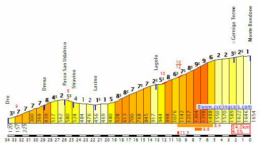 El encadenado de Udalrico + Monte Bondone por Lagolo. Perfil de Cyclingcols