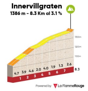 2ª ETAPA (Martes 18 Abril):  INNSBRUCK – INNERVILLGRATEN  (181,3 km).  Info en la webRutómetro