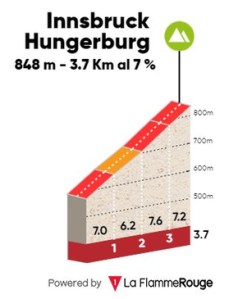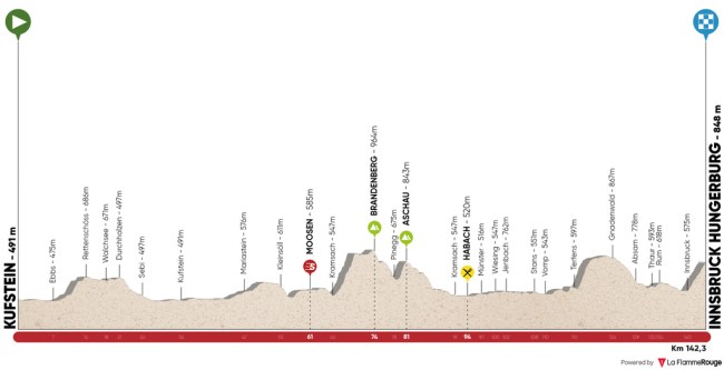 1ª ETAPA (Lunes 17 Abril):  KUFSTEIN – INNSBRUCK / HUNGERBERG  (142,3 km).  Info en la webRutómetro