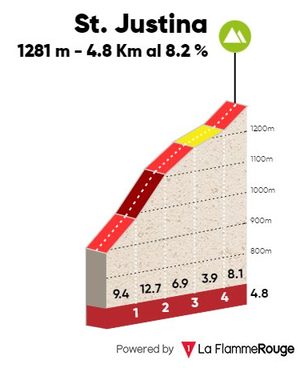 St.Justina, irregular pero con tramos duros. Perfil de La Flamme Rouge