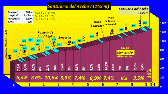 La vertiente N del puerto, con 2 km al 10%, Perfil de 39×28