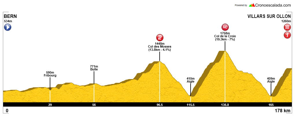 4ª ETAPA (Martes 13 Junio): BERN – VILLARS SUR OLLON (150,2 km). Rutómetro / Mapa interactivo