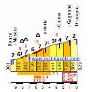- Druogno, 3ª (km 167,5): 820 m – 6,7 km – 6,5 % *sin icluir falso llano inicial y final