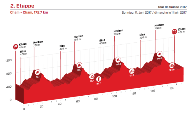2ª ETAPA (Domingo 11 Junio): CHAM – CHAM (172,7 km). Rutómetro / Mapa interactivo