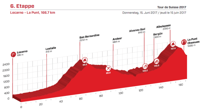 6ª ETAPA (Jueves 15 Junio): LOCARNO – LA PUNT (166,7 km). Rutómetro / Mapa interactivo