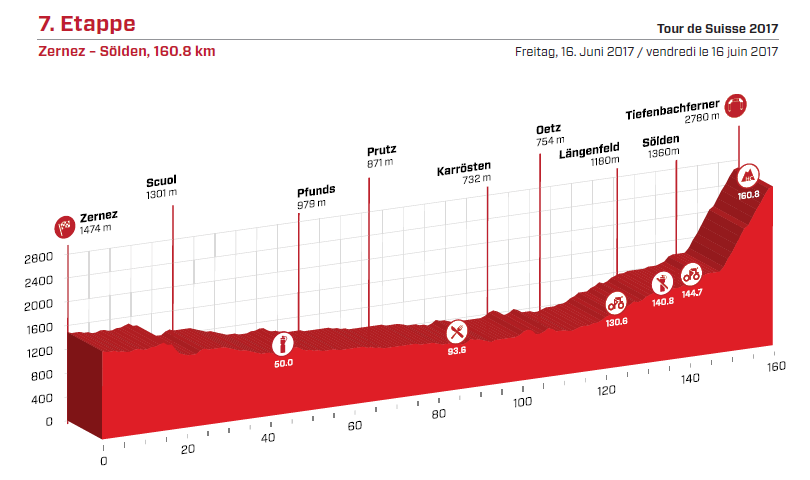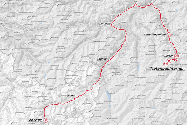 7ª ETAPA (Viernes 16 Junio): ZERNEZ – SOLDEN / TIEFENBACHFERNER (160,8 km). Rutómetro / Mapa interactivo