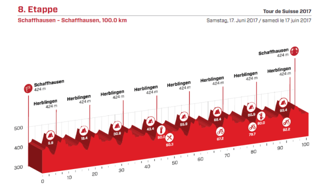 8ª ETAPA (Sábado 17 Junio): SCHAFFHAUSEN – SCHAFFHAUSEN (100 km). Rutómetro / Mapa interactivo