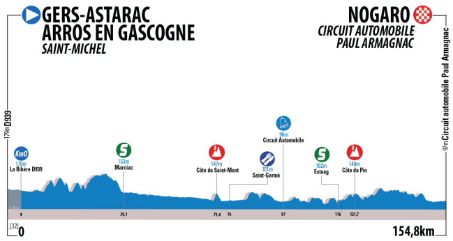 Y como despedida de la prueba, una jornada de 155 km entre el pueblo de Saint Michel, perteneciente a la comuna de Astarac, en el departamento de Gers, y el circuito automovilístico de Paul Armagnac, en la localidad de Nogaro, con una 1ª parte de la ruta «rompepiernas» hasta llegar a Marziac, yendo a partir de ahí en busca del circuito, con un primer paso antes de realizar un bucle de casi 60 km al norte de Nogaro, acabando la etapa con un 2ª paso por el circuito, siendo un día muy favorable para los sprinters. Globalmente, un recorrido interesante, con etapas para casi todo tipo de corredores y circulando por zonas novedosas, echandose sólo de menos una contrarreloj. Y no hacía falta renunciar a una de las jornadas en línea, ya que se podría haber hecho un doble sector, por ejemplo el último día, acabando la etapa en el primer paso por Nogaro y haciendo la CRI por la tarde. En cualquier caso, terreno hay para que se vea una bonita carrera a poco que los ciclistas se muestren combativos.