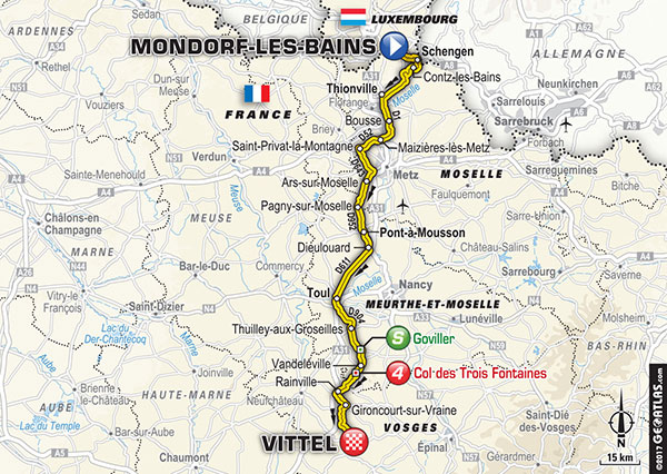 4ª ETAPA (Martes 4 de Julio):  MONDORF LES BAINS – VITTEL  (207,5 km).  Info oficial