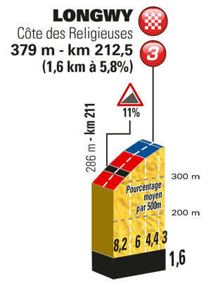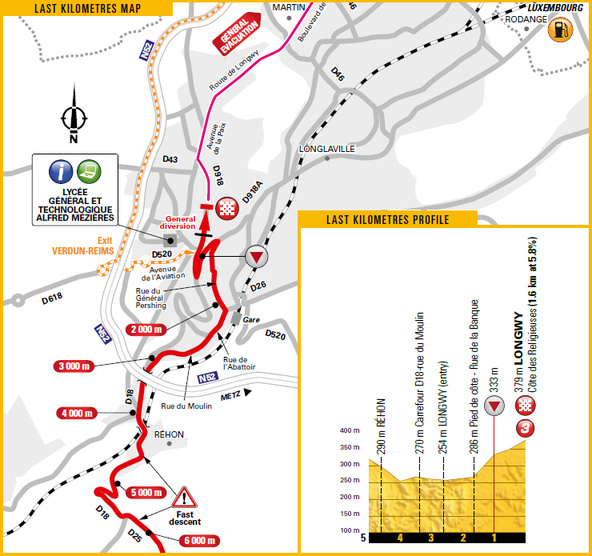 • Longwy – Côte des Religieuses, 3ª (Meta):  397 km 1,6 km – 5,8 %