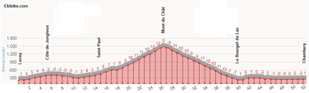 • Côte de Jongieux, 4ª (km 134):  414 m – 3,9 km – 4,2 %