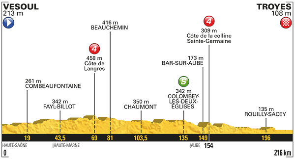 6ª ETAPA (Jueves 6 de Julio):  VESOUL – TROYES  (216 km).  Info oficial / Últimos km