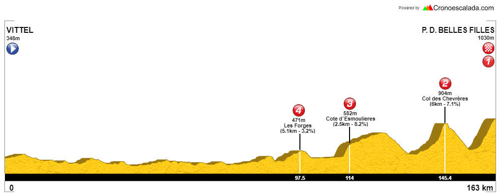 5ª ETAPA (Miércoles 5 de Julio):  VITTEL – LA PLANCHE DES BELLES FILLES  (160,5 km).  Info oficial