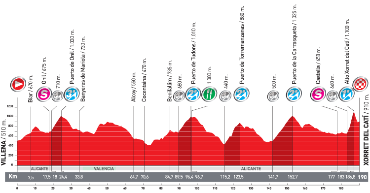 8ª ETAPA (Sábado 26 de agosto): HELLÍN – XORRET DE CATÍ / COSTA BLANCA INTERIOR (199,5 km). Info oficial / Últimos km