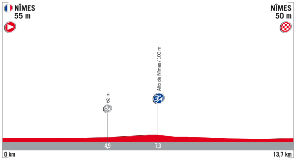 1ª ETAPA (Sábado 19 agosto): NÎMES – NÎMES (CRE) (13,7 km). Info oficial (incluye rutómetro y horarios)