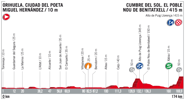 9ª ETAPA (Domingo 27 de agosto): ORIHUELA (CIUDAD DE MIGUEL HERNÁNDEZ) – BENITATXELL / CUMBRE DEL SOL (174 km). Info oficial / Últimos km