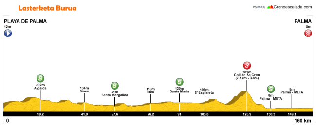 Trofeo Playa de Palma – Palma, 159,6 km (Domingo 28 de enero). Info en la web / Rutómetro / Perfil oficial / Mapa interactivo