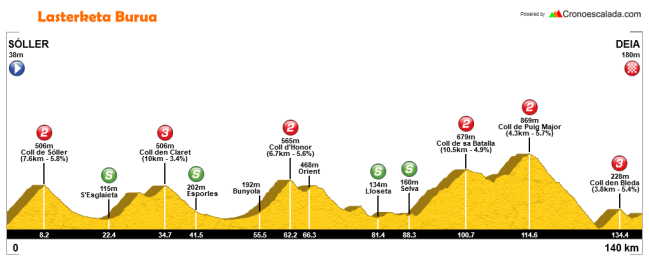 Trofeo Serra de Tramuntana (Sóller-Deià), 140,1 km (Viernes 26 de enero). Info en la web / Rutómetro / Perfil oficial / Mapa interactivo