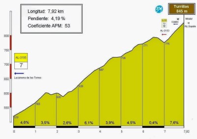 - Alto de Turrillas, 2ª (km 92,5): 810 m – 4,3 km – 5,2 %