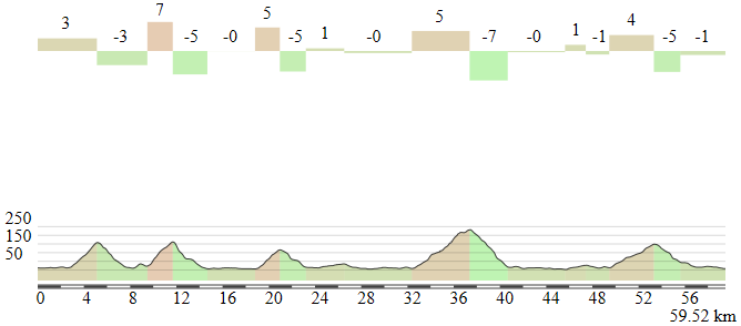Y al igual que en la cota previa, atención al complicado descenso -> vídeo, de nuevo algo más inclinado que la subida (aunque en este caso sin llegar al 5% de media) y con varias curvas cerradas, siendo clave para la resolución de la carrera en varias ediciones. Desde el final de la bajada hasta meta restarán sólo 2,3 km, la mayoría en línea recta pero con un “zig-zag” ya dentro del último km, con una curva de 90º a izquierdas seguida por otra a derechas, que puede dificultar la colocación de los corredores en caso de sprint masivo, si bien la recta de meta, situada de nuevo en la Vía Roma, tiene más de 700 m, con sólo un ligerísimo curveo a medio km del final.