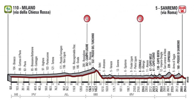Este sábado se disputa la 109ª edición de la Milano-Sanremo, también conocida como “la Classicissima” o “la clásica de la primavera”, y el primero de los 5 monumentos ciclistas, siendo una de las carreras de un día más importantes de la temporada, manteniendo su fecha clásica, a la que regresó en 2016 después de varios años celebrándose el domingo, y el recorrido de las últimas ediciones, con el Turchino, Capo Berta, Cipressa y Poggio como únicas cotas de entidad antes de la llegada en la Via Roma, aunque ojo a las condiciones meteorológicas, estando previsto lluvia.