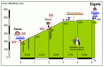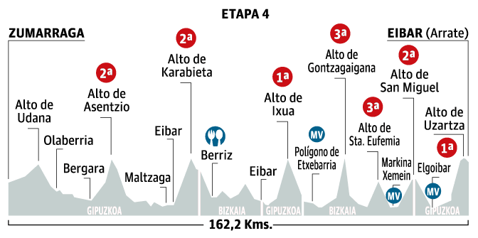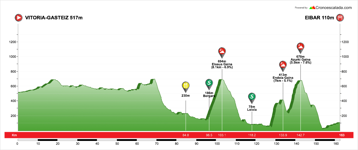 5ª ETAPA (Viernes 6 Abril): VITORIA-GASTEIZ – EIBAR (164,7 km). Info en la web (rutómetro) / Mapa interactivo