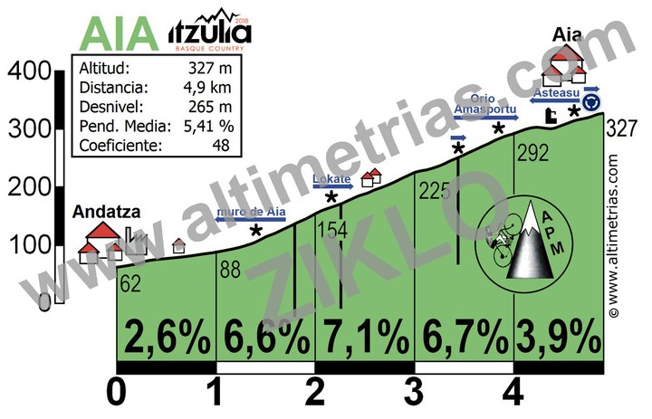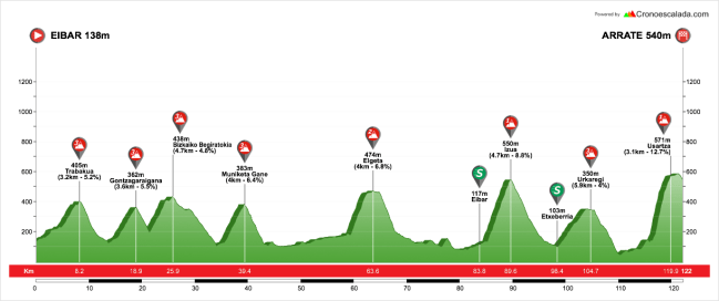 6ª ETAPA (Sábado 7 Abril): EIBAR – ARRATE (122,2 km). Info en la web (rutómetro) / Mapa interactivo