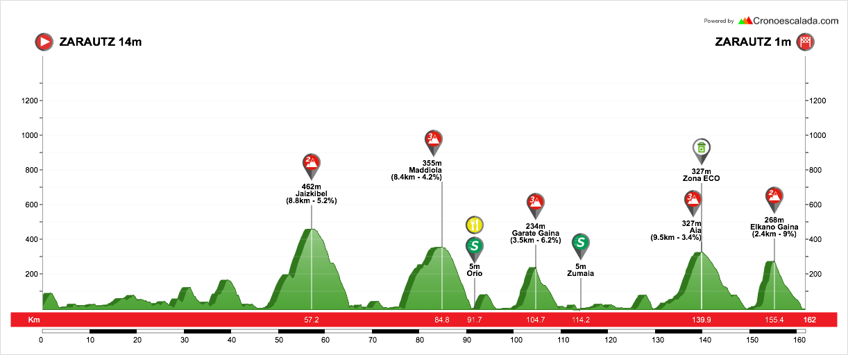 1ª ETAPA (Lunes 2 Abril): ZARAUTZ – ZARAUTZ (162,1 km). Info en la web, incluye rutómetro / Mapa interactivo