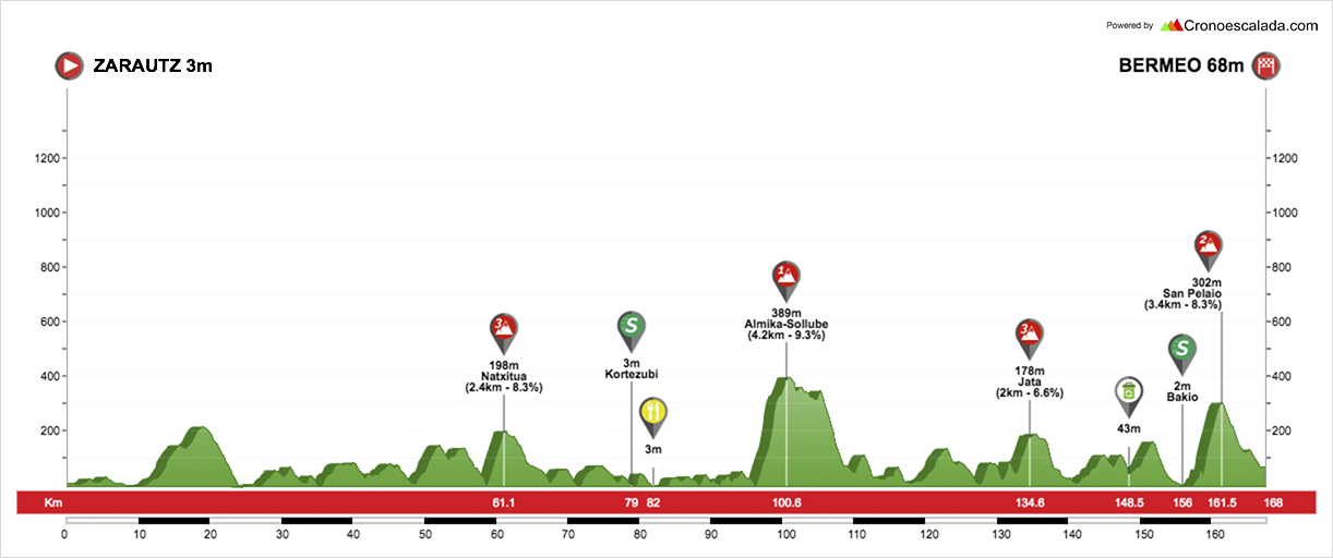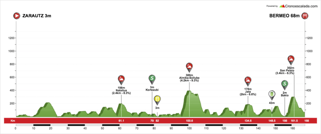 2ª ETAPA (Martes 3 Abril): ZARAUTZ – BERMEO (166,7 km). Info en la web (rutómetro) / Mapa interactivo
