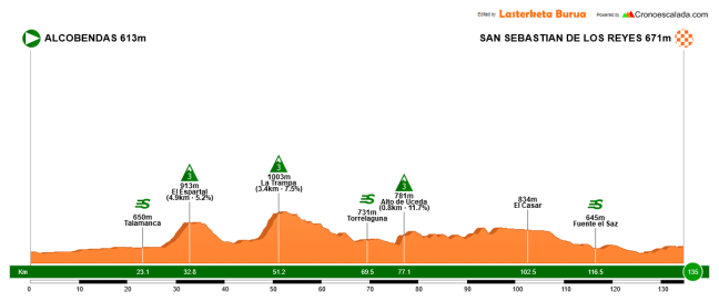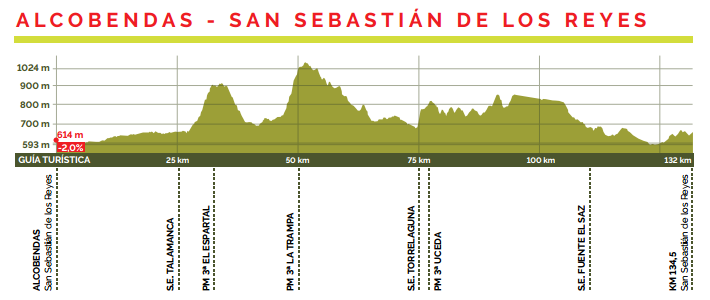 ETAPA 2 (Sábado 5 de mayo): SAN SEBASTIÁN DE LOS REYES – SAN SEBASTIÁN DE LOS REYES (134,5 km). Info en la web / Perfil oficial / Rutómetro 1 – parte 2 / Últimos km / Salida – llegada