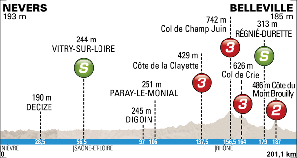 2ª ETAPA (Martes 5 junio): MONTBRISON – BELLEVILLE (181 km). Info oficial / Últimos km
