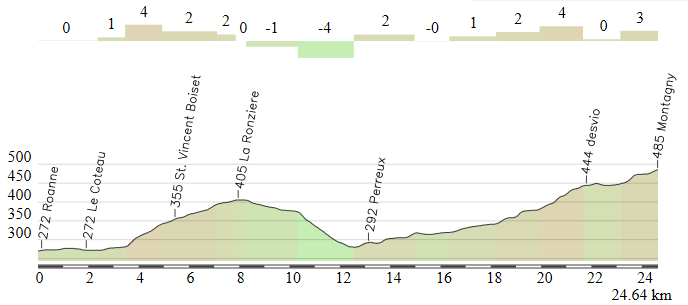 - Côte de Les Jarrands, np (km 163): 935 m – 3,3 km – 5,1 %