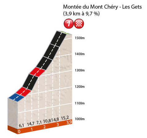 - Col de Toutes Aures, 4ª (km 102): 620 m – 2,5 km – 5,1 %