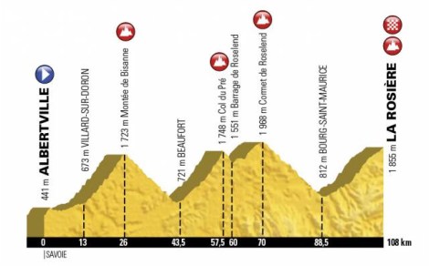 - La Rosiére, 1ª (Meta): 1.855 m – 17,6 km – 5,8 %