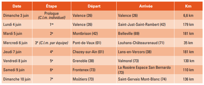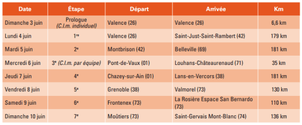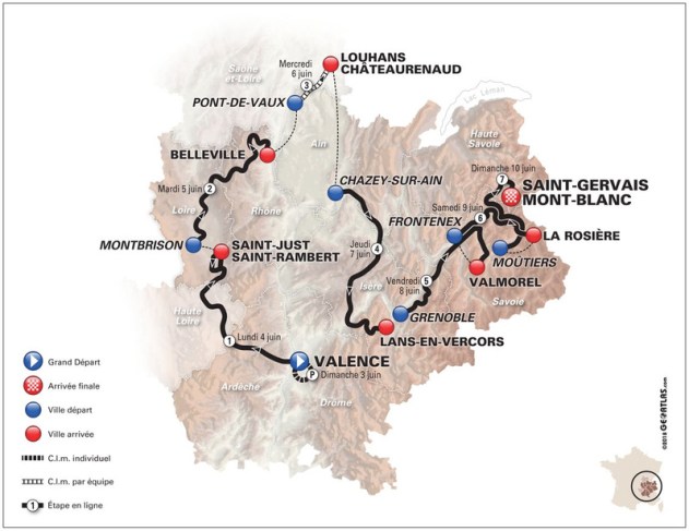 1ª ETAPA (Lunes 4 junio): VALENCE – SAINT JUST SAINT RAMBERT (170,5 km). Info oficial / Últimos km