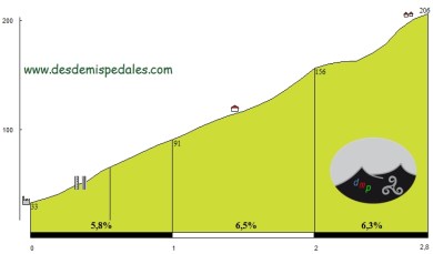 - Alto de Meagas, np (km 27): 141 m – 3,7 km – 3,4 %
