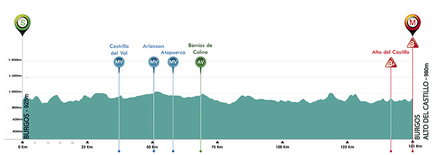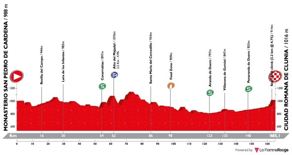 Superada la dura jornada de Picón Blanco y en vísperas de las Lagunas de Neila, turno para una etapa de 165 km entre el Monasterio de San Pedro Cardeña, y los restos arqueológicos de la ciudad romana de Clunia, junto al pueblo de Peñalba de Castro, contando con un recorrido “trampa”, ya que además de las múltiples cotas en el tramo central de la ruta (que no se aprecian bien en el perfil oficial, muy poco detallado), se atraviesan algunas zonas muy expuestas en últimos 70 km, con peligro de abanicos a poco que sople el viento, por lo que los corredores que aspiren a la general deberán estar muy atentos.