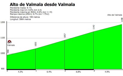 El suave descenso de Retuerta dará paso a una zona de falsos llanos hasta llegar a la localidad de Espinosa de los Monteros, inicio del duro ascenso final, con unas cifras de 8,5 km a más del 9% de media, incluyendo km enteros al 12% y rampas máximas de hasta el 17% -> perfil y fotos, lo que unido al desgaste previo puede provocar grandes diferencias en meta a poco que el ritmo sea elevado, quedando la general ya muy definida, aunque todavía restarán 2 etapas donde puede haber cambios en la clasificación.
