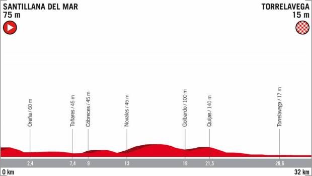 La última semana de carrera se inicia con una crono individual de 32 km entre Santillana del Mar y Torrelavega, en Cantabria, teniendo una ruta quebrada, más de lo que aparenta el achatado perfil oficial, sobre todo durante los primeros 25 km, con muy pocas zonas realmente llanas, destacando la subida al Alto de Golbardo, que con 2 km iniciales al 5,8% se podría incluso marcar como puerto. La parte final de la crono, ya en Torrelavega, sí es plana, aunque con varias curvas cerradas antes de la meta junto al polideportivo Oscar Freire. En resumen, una CRI para corredores completos, si bien dado que la otra contrarreloj de esta edición apenas tiene 8 km se echa en falta mayor distancia, como mínimo rondando los 40 km, para que el trazado global estuviera más equilibrado. De todos modos, no es un problema sólo de la Vuelta, con Giro y Tour habiendo tenido este año crono «largas» de distancia similar, con 34 y 31 km respectivamente. Respecto a los antecedentes en la Vuelta, su colocación es idéntica a la de Burgos 2015 -> clasificación, con triunfo de Dumoulin, y Logroño 2017 -> clasificación, donde se impuso Froome, si bien ambas eran más largas y llanas, con la de Logroño siendo la única que ha superado los 40 km en el último lustro.