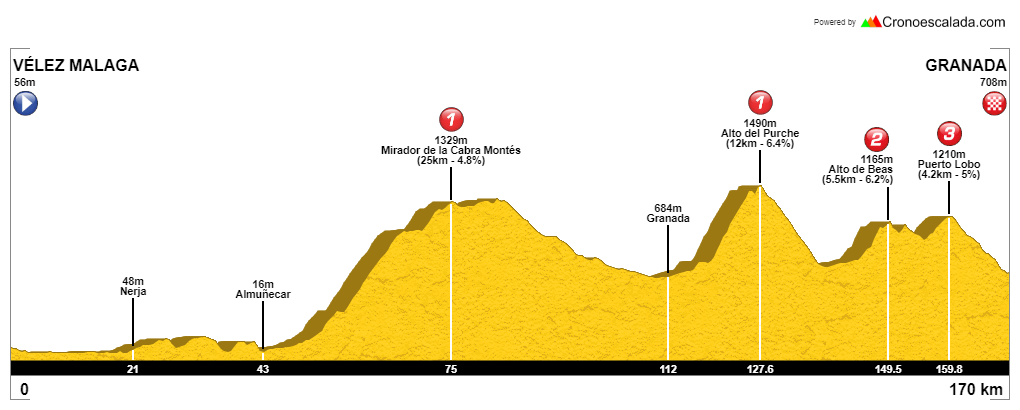 1. En general un recorrido decepcionante,parecen empeñados en hacernos entender que en España no se pueden hacer buenos encadenados de montaña,algo totalmente falso,tenemos una orografía muy dura y más variada que en Francia,una pena ,espero que algún día se den cuenta que en nuestro país tenemos puertos de paso duros,la verdad en que empezamos a cansarnos de tantos finales en muros,no tiene sentido se echan en falta dos etapas con desnivel exigente y buenos encadenados como en 2015,aquí en Andalucía por cierto eluden las zonas más duras cuando transitan por Jaén o por Granada,en Almería se pueden hacer auténticos etapones.