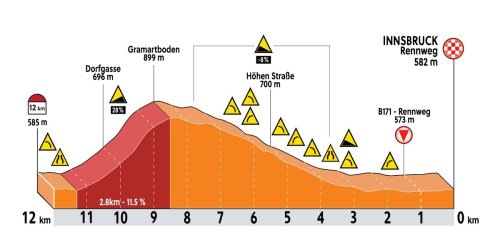 El gráfico oficial de Igls, con 7 km finales al 6%