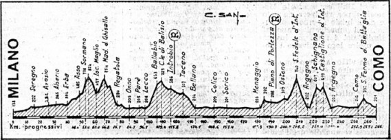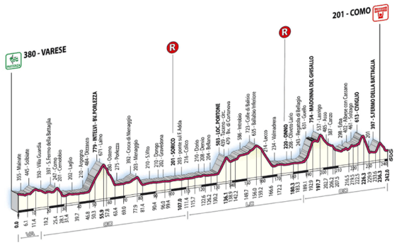 - Monte Olimpino (km 237,8): 301 m – 1,7 km – 5,8 %