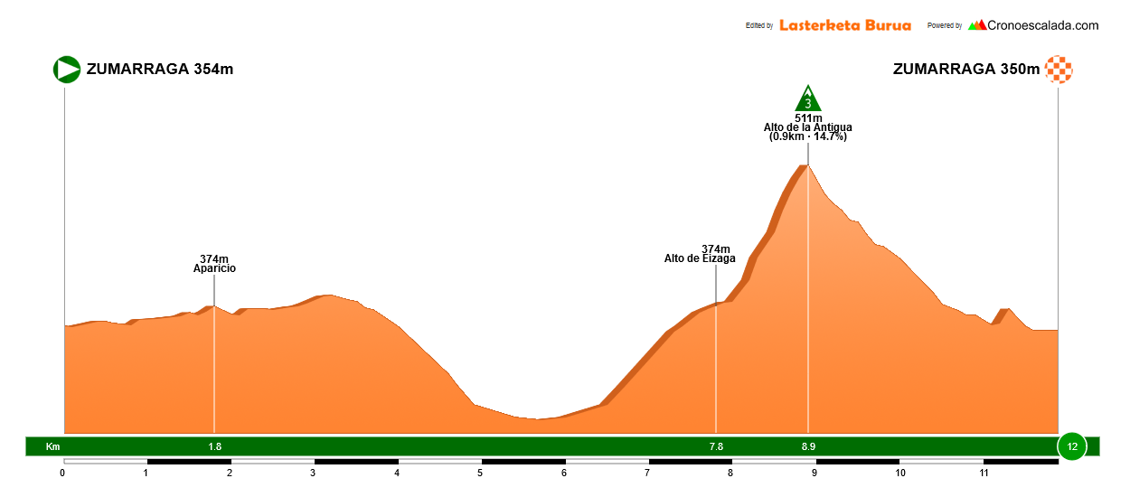 1ª ETAPA (Lunes 8 Abril): ZUMARRAGA – ZUMARRAGA (CRI) (11,2 km). Info en la web, incluye rutómetro