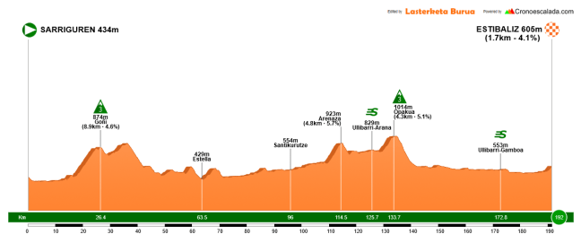 3ª ETAPA (Miércoles 10 Abril): SARRIGUREN – ESTIBALIZ (191,4 km). Info en la web, incluye rutómetro