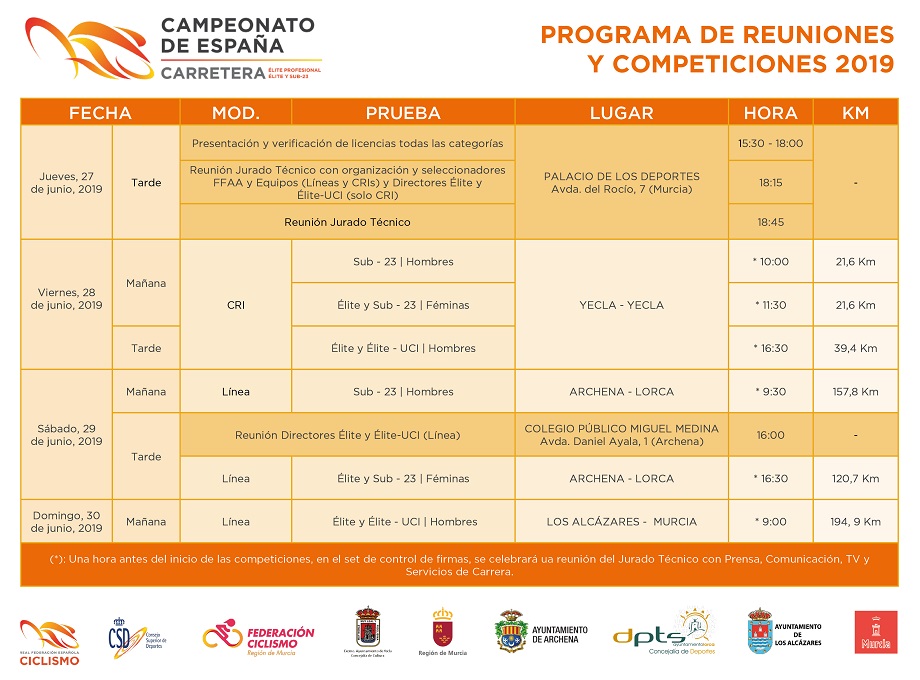 Durante este fin de semana, del 28 al 30 de junio, se celebra una nueva edición de los Campeonatos de España de Ciclismo en Carretera, en esta ocasión en la Región de Murcia, con final en Yecla para las pruebas contrarreloj, Lorca para las carreras sub-23 masculina y élite femenina, y la ciudad de Murcia para la prueba élite UCI Masculina, con la buena noticia de que tanto esta última, que se disputará el domingo, como la carrera femenina, el sábado por la tarde, tendrán retransmisión en directo por TV, a través del canal de La Liga Sports.