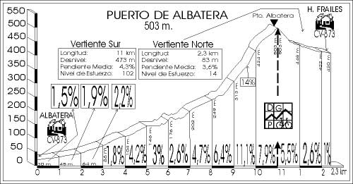 Albatera / Hondón de los Frailes, con 2,5 km finales duros, aunque lejos de meta. Perfil Rutas de Ciclismo
